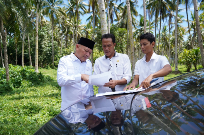 TIMES MALUT – Wakil Gubernur Maluku Utara, Sarbin Sehe, meninjau lokasi pembangunan Sekolah Unggulan Garuda (SG) di Desa Tabadamai, Halmahera Barat.